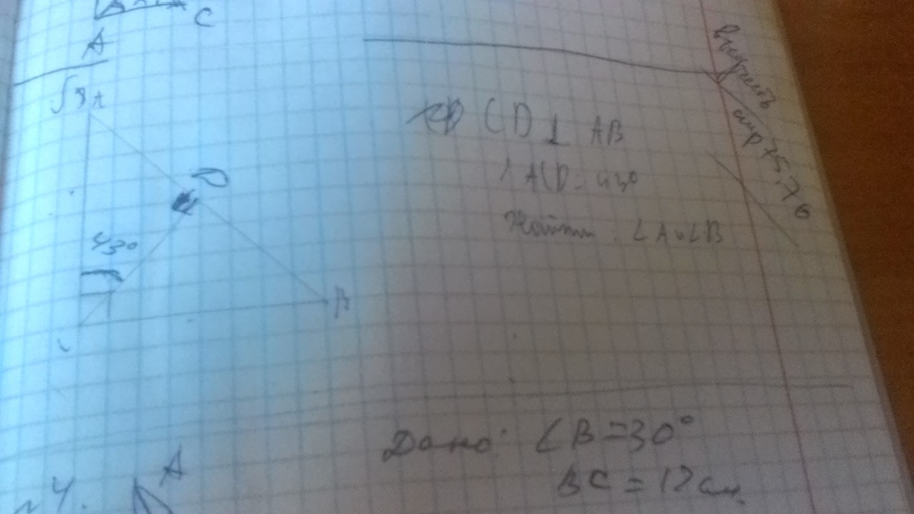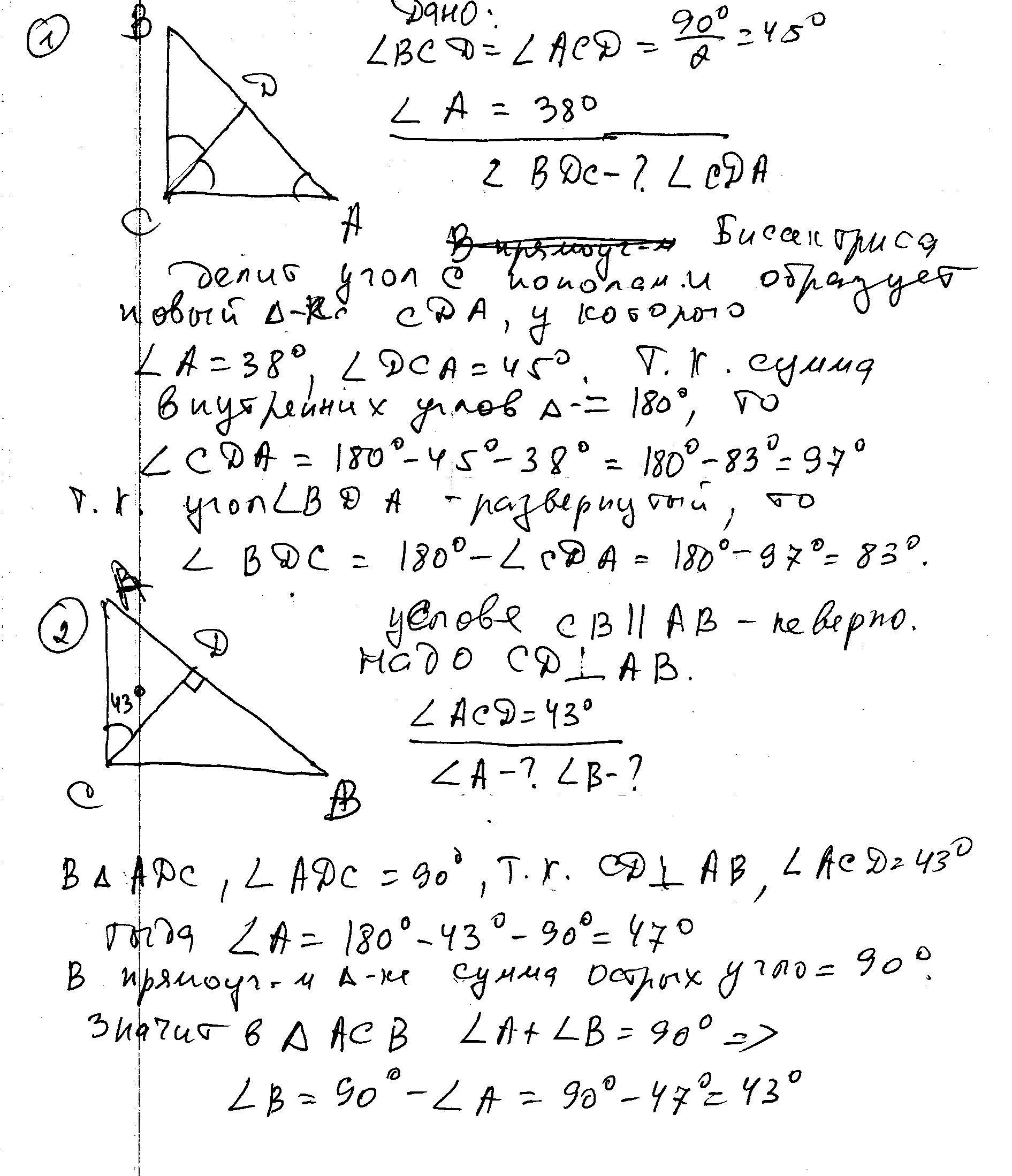 Угол ACD=43 градуса Найти Угол A и Угол B