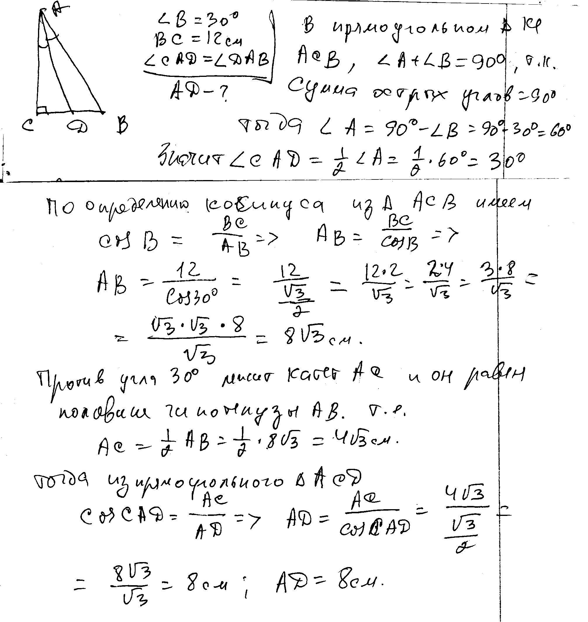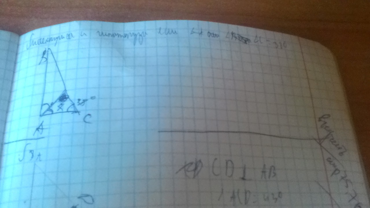 Найти угол который образует биссектриса и гипотенуза если угол C =38градусов