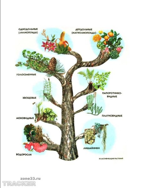 3.Схема эволюции систематических групп растений показывает их общих предков, родство между ними и постепенное расхождение видов.