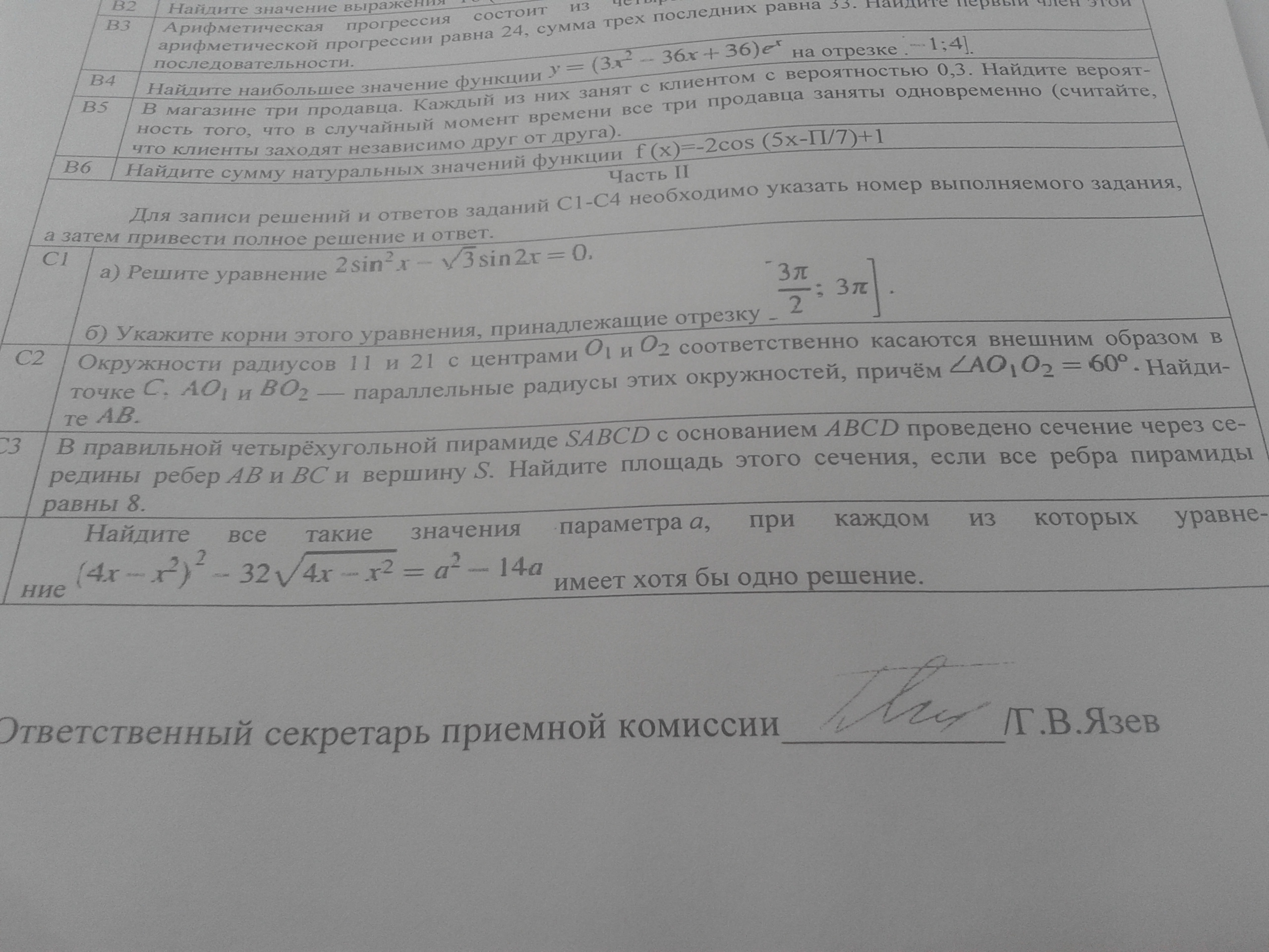 С₄) (4х-х²)²-32√(4х-х²)=а²-14а