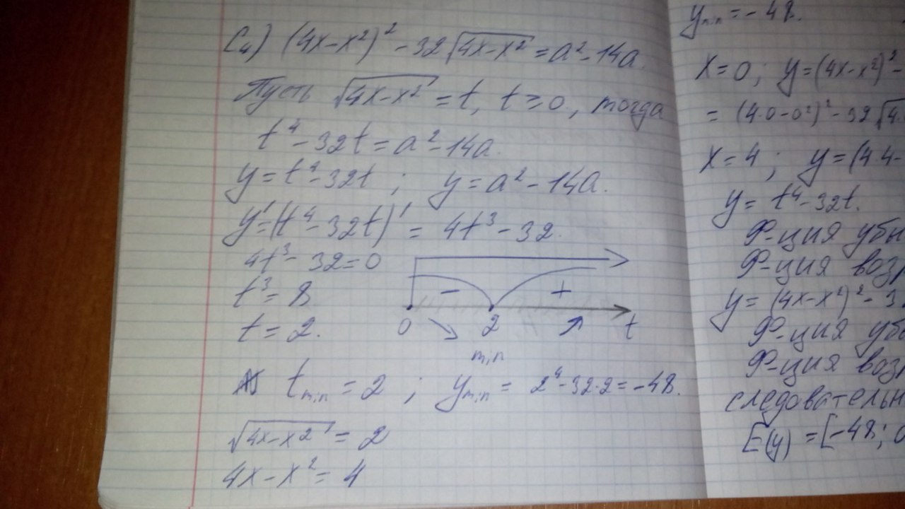 у=(4х-х²)²-32√(4х-х²) и у=а²-14а