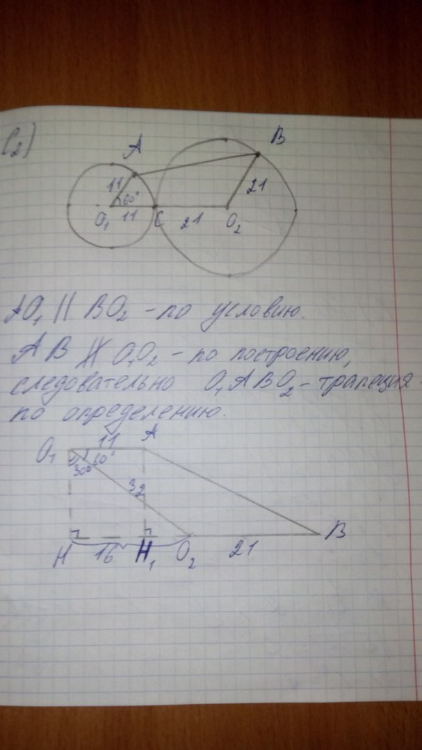 На верхнем рисунке О₁О₂=О₁С+О₂С=11+21=32