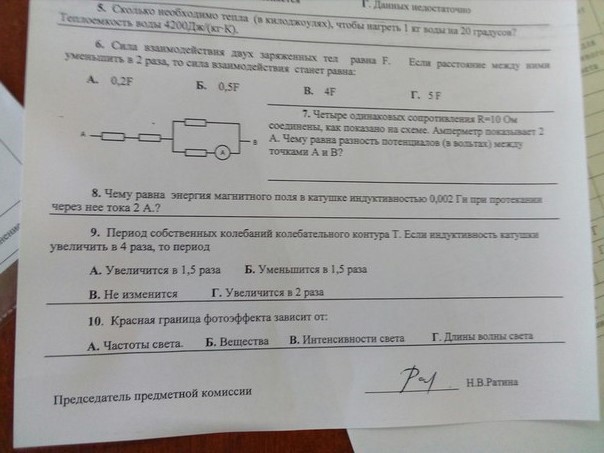 9. T=2П*√L*C. Если индуктивность увеличить в 4 раза, то период увеличится в 2 раза, так как знак корня. Ответ Г