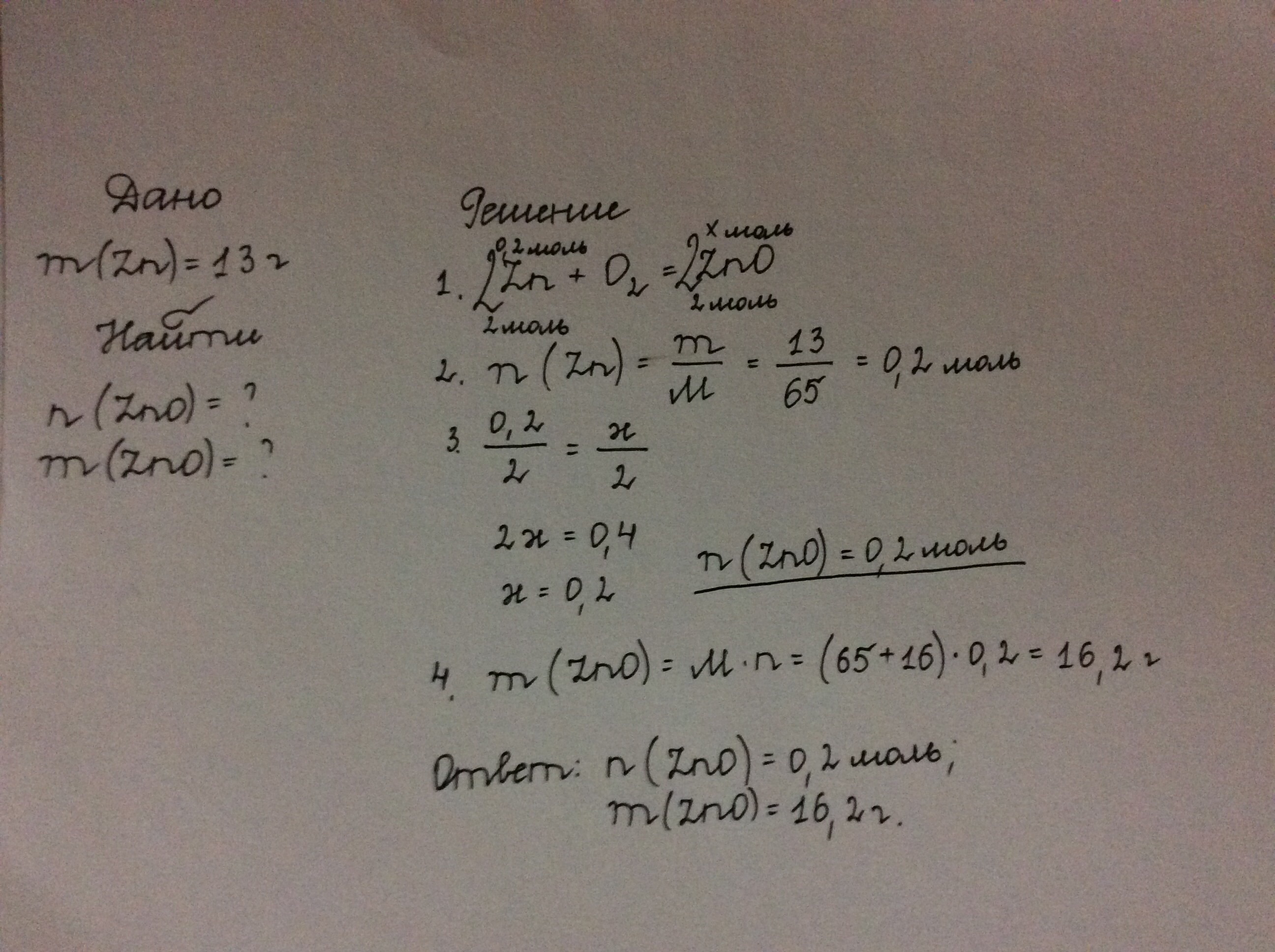 13грамм цинка прореагировало с кислородом О2. Какое количество оксида цинка образовалось ? Какова масса этого количества оксоксида цинка?