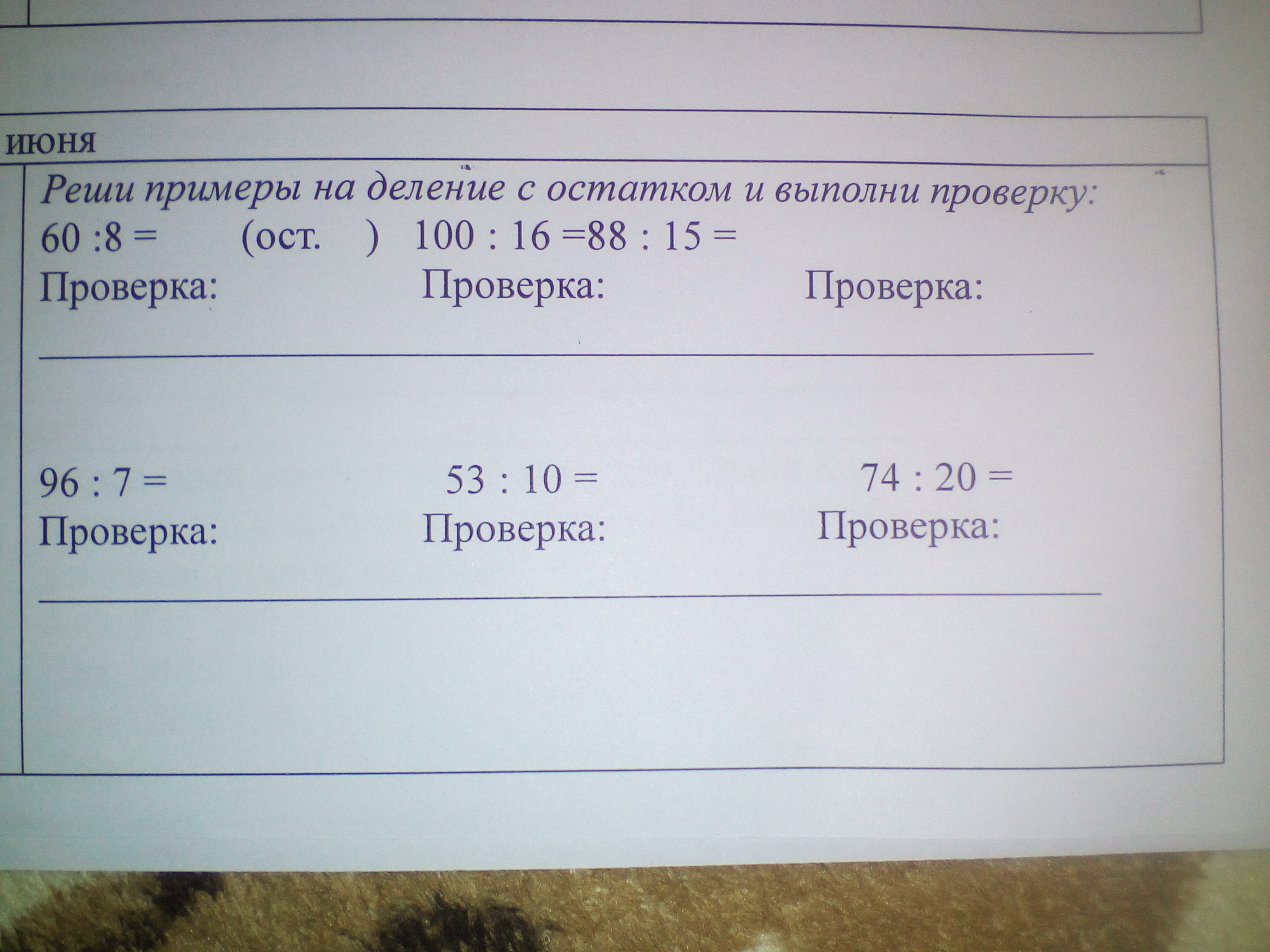 60:8=7(ост.4) 100:16=88:15=6( 1)ост.4 2)ост.8 )