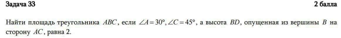 угол A - 30 градусов , угол C - 45 градусов , а высота