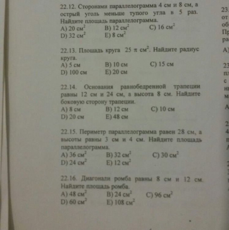 22.16 S=1/2*d1*d2=1/2*8*12=48