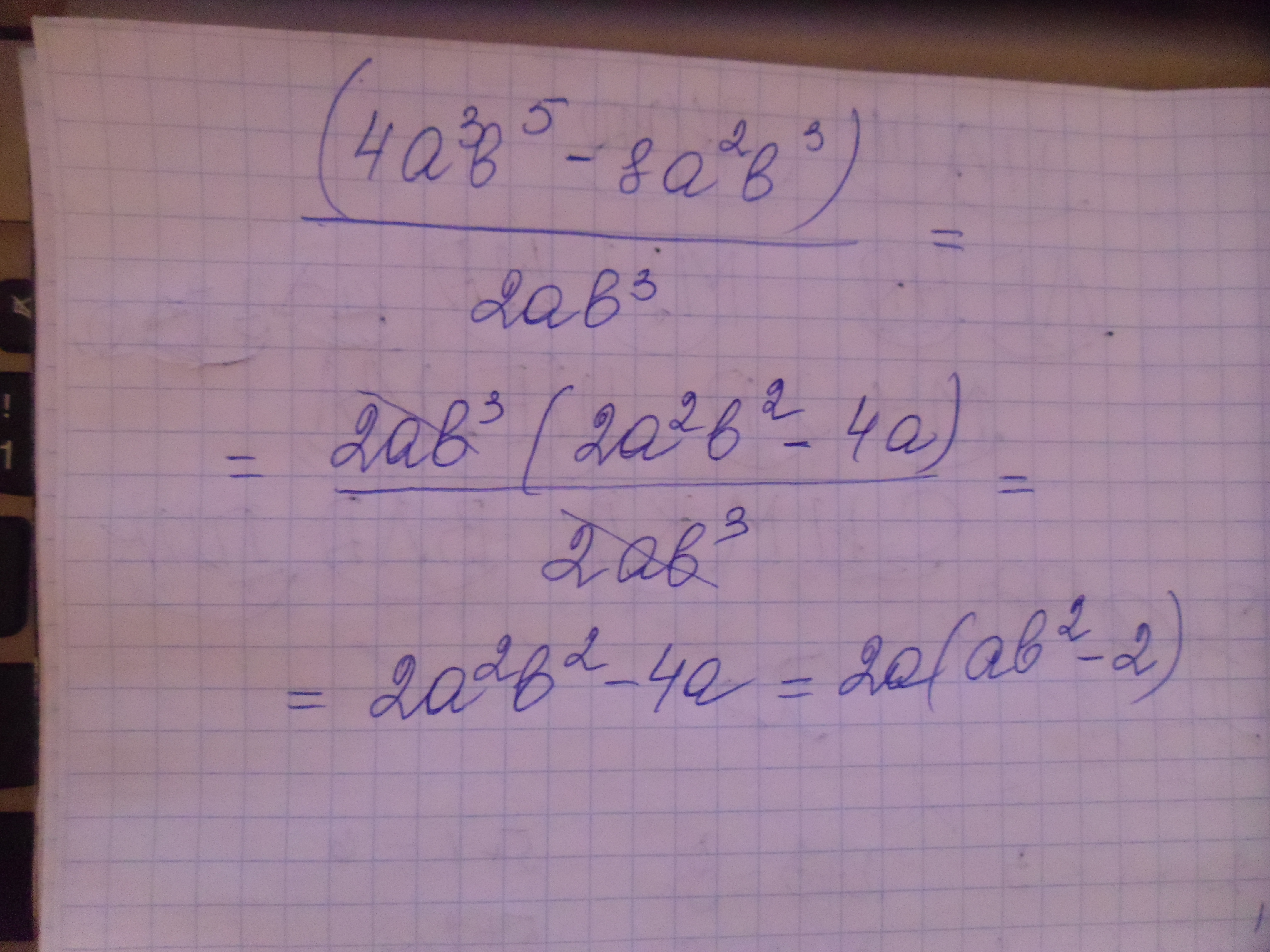 Для успешного выполнения задачи необходимо разделить на одночлен почленно, то есть каждое слагаемое разделить на этот одночлен, то есть первый шаг будет выглядеть так: