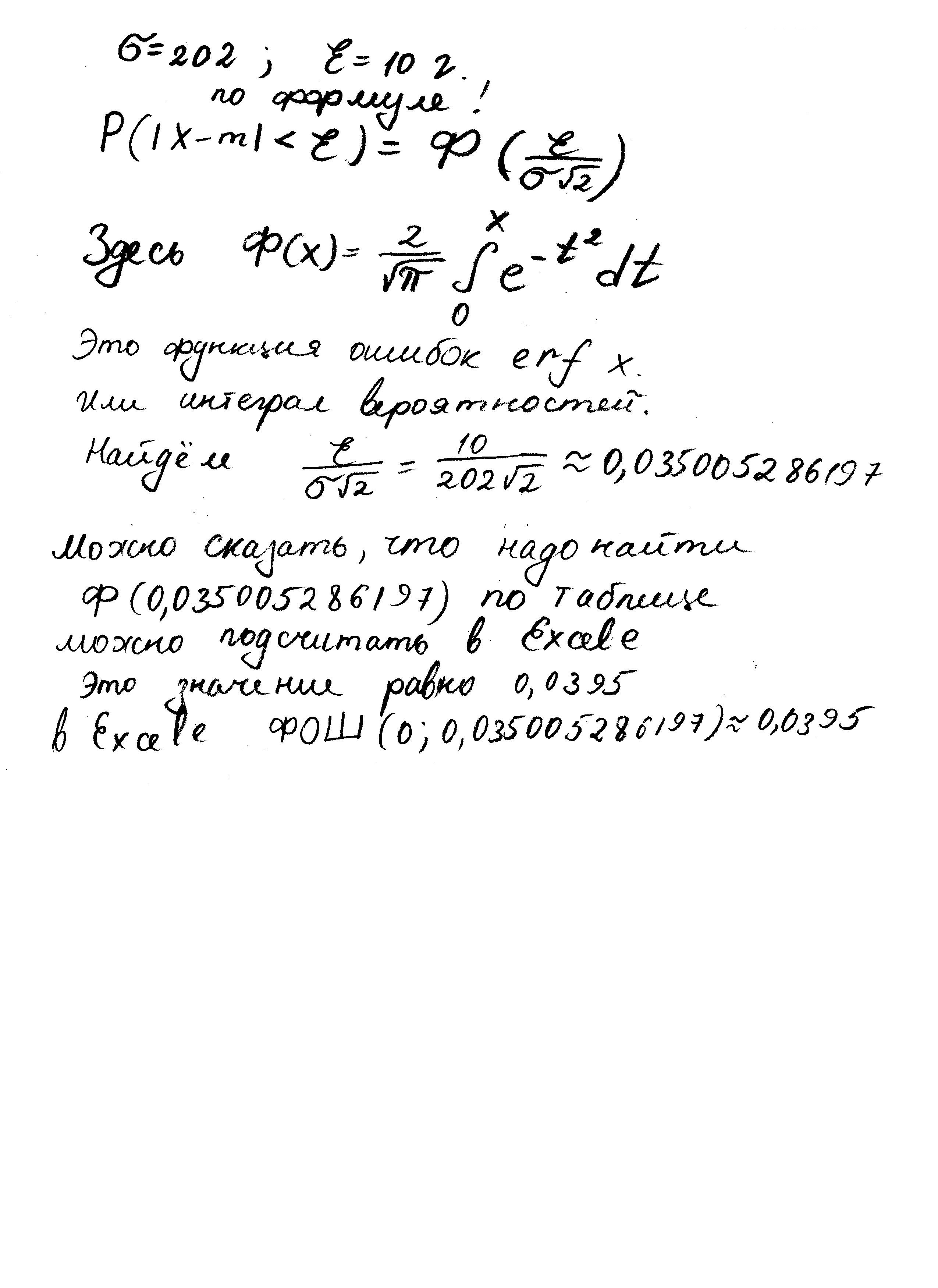 Ребятки,теория вероятности!Помогите! Производится взвешивание некоторого вещества без систематических (одного знака) погрешностей. Случайные погрешности взвешивания подчинены нормальному закону со средним квадратическим отклонением σ=202. Вероятность того, что взвешивание будет произведено с погрешностью не превосходящей по абсолютной величине 10г. Равна: