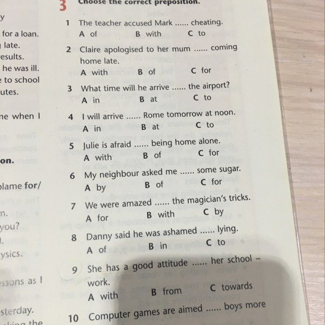 9. С. (У нас есть устоявшееся выражение: attitude to/towards - отношение к, а так как у нас ник то, у нас один вариант - towards).