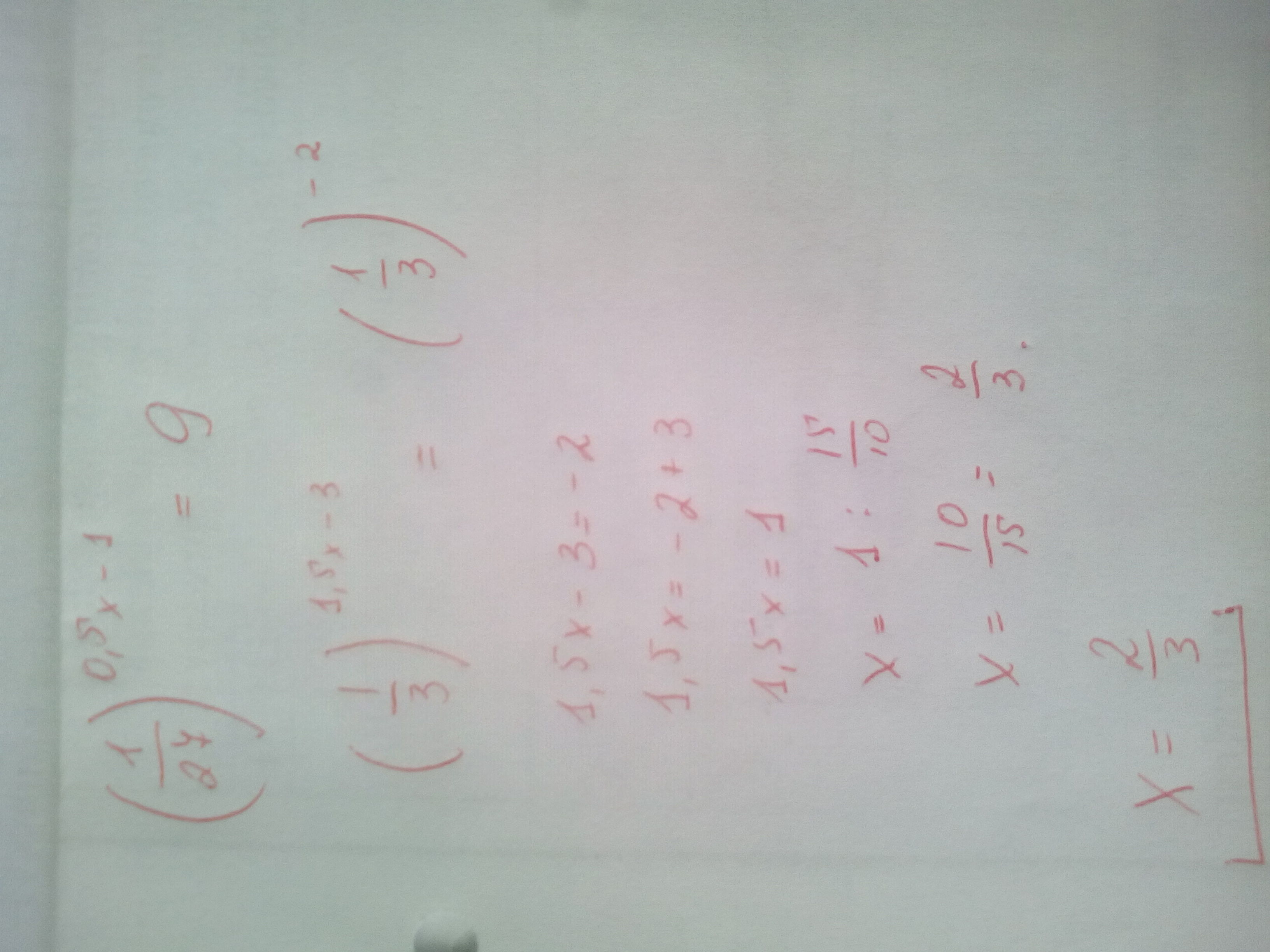 3 ^ ( - 3( 0,5х - 1 )) = 3 ^ 2