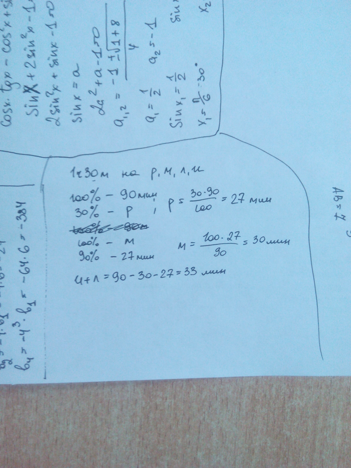 2)подсчитаем в % сколько заняло времени на выполнение русского и математики, итого: 30+90=120%