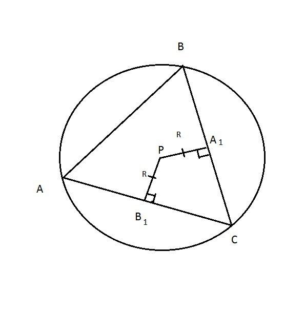 A1 та B1 — проекції точки P описаного кола трикутника ABC на прямі BC та AC построила.
