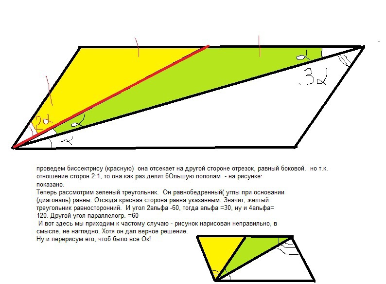 Диагональ параллелограмма делит его угол в отношении 1: 3. Зная, что длины сторон относятся как 1: 2, найдите углы параллелограмма.