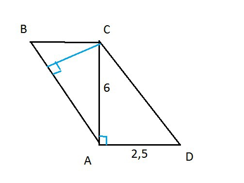 2,5*6=15 площадь параллелограмма