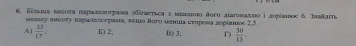 6,5*х=15, х меньшая высота