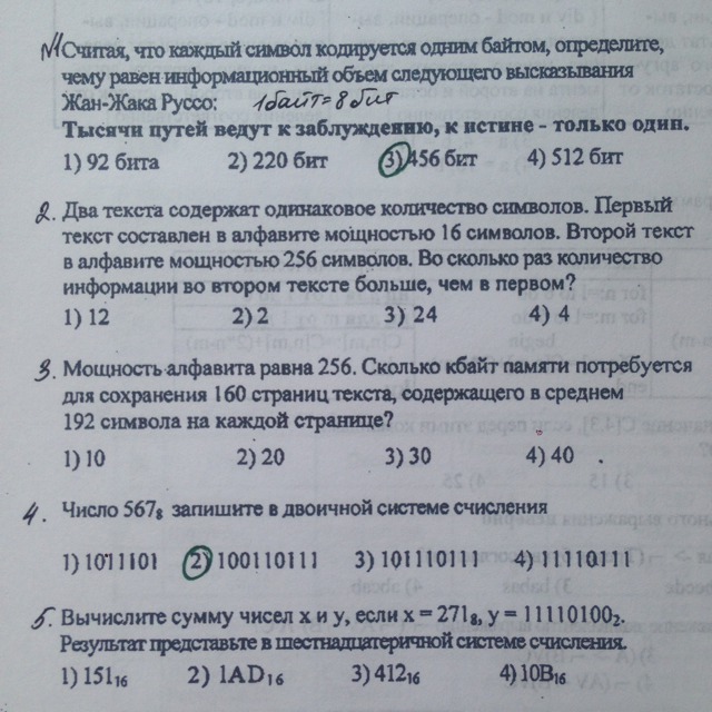 5) х=271₈, у=11100100₂. Сумма нужна в 16-й системе счисления (далее с/с), в ней у нас ни одно слагаемое не представлено, поэтому есть три приемлемых варианта. На самом деле, их четыре, но четвертый затратен: все перевести в десятичную с/с, сложить, а потом результат перевести в шестнадцатиричную с/с. Основные варианты сводятся к переводу одного из слагаемых к основанию с/с другого слагаемого , проведения сложения в этой с/с и переводе результата в шестнадцатиричную с/с, либо к переводу обоих слагаемых в шестнадцатиричную с/с и сложения в ней.