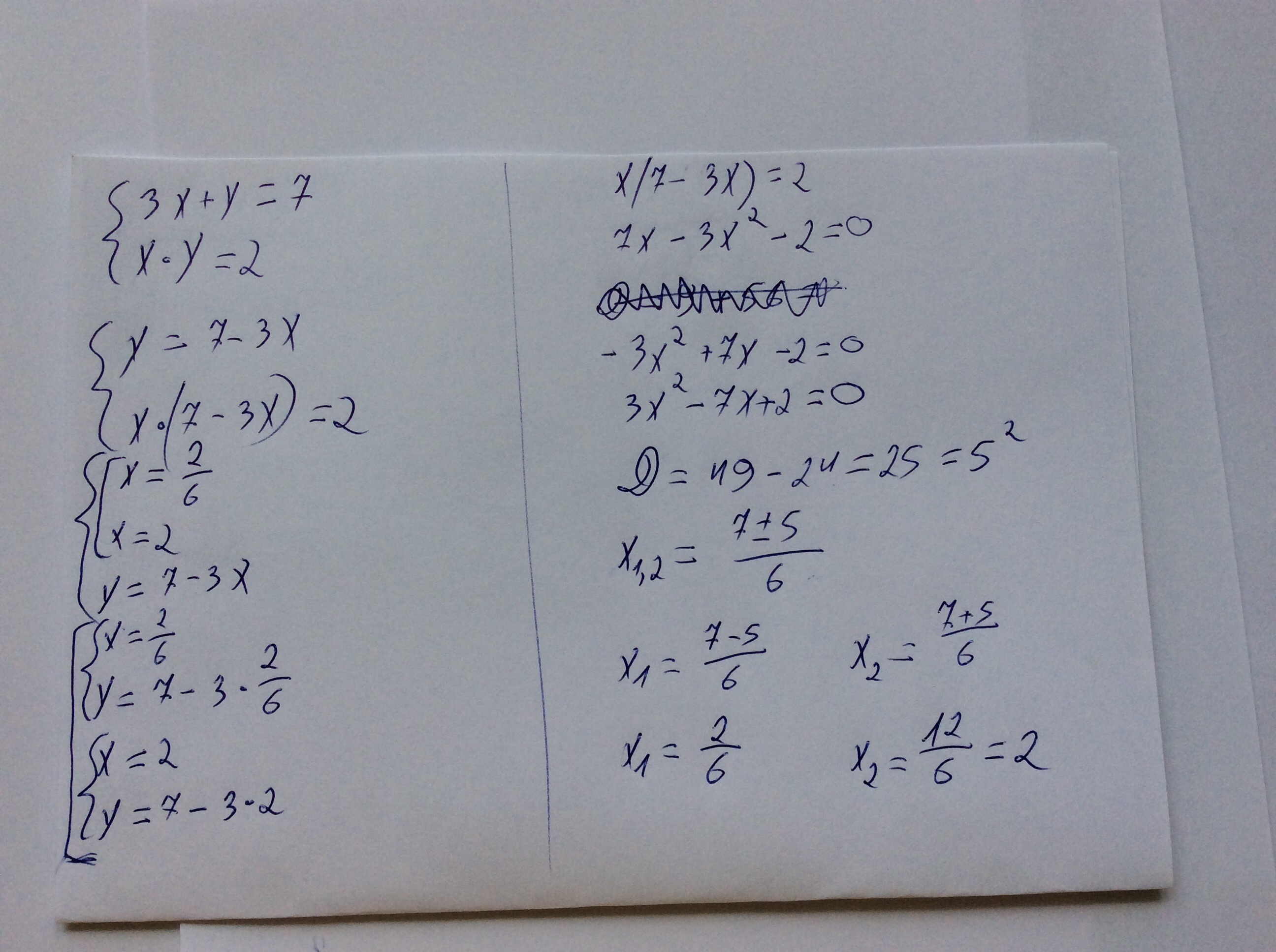 y1=7-3*2=1 y2=7-3/3=6