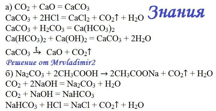 а) CO2 <---> CaCO3 ---> Ca(HCO3)2 ---> CaCO3 ---> CaO