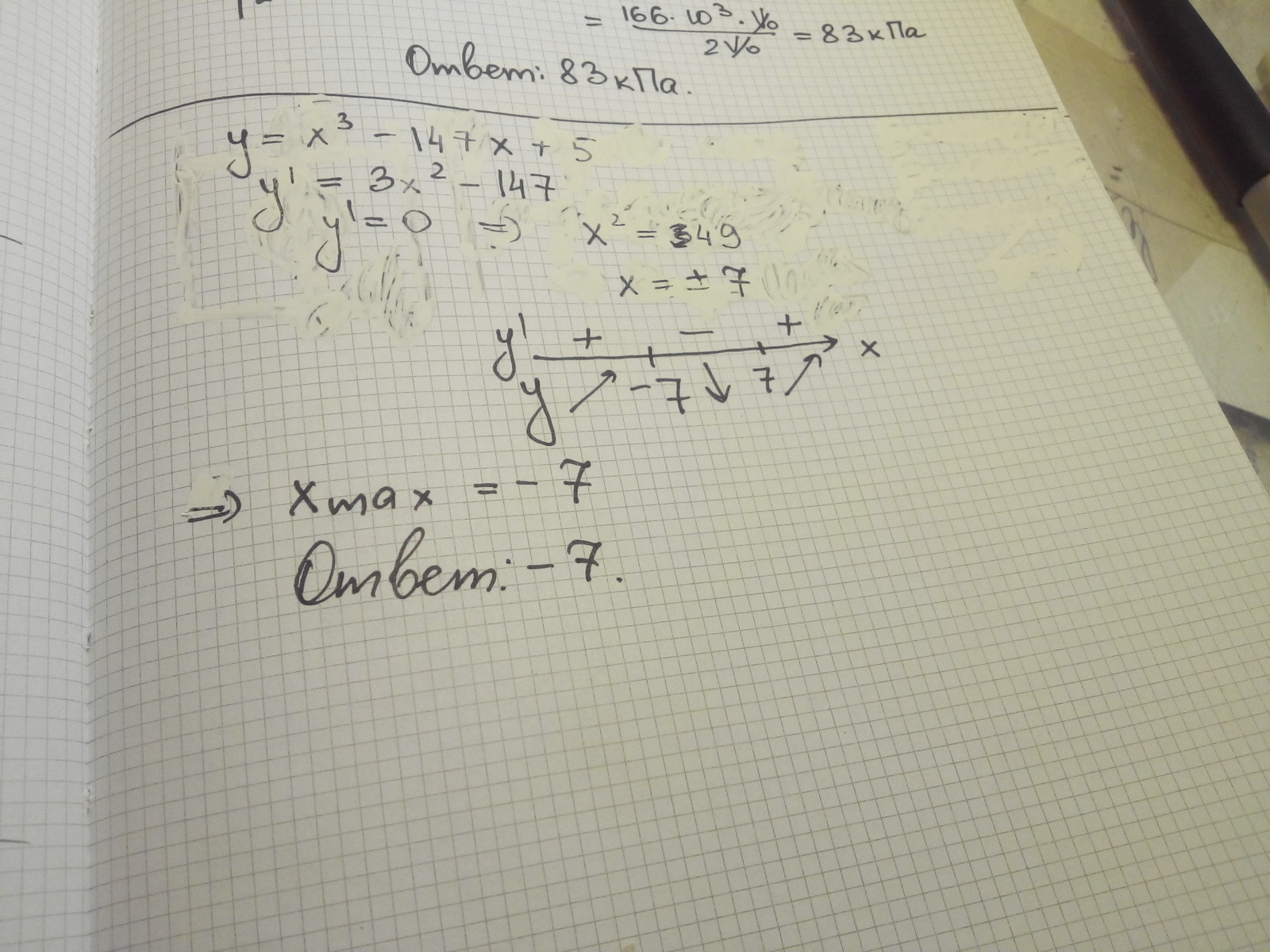 При переходе через точку x=-7 производная меняет знак с "+" на "-", значит в этой точке функция достигает своего максимуму.