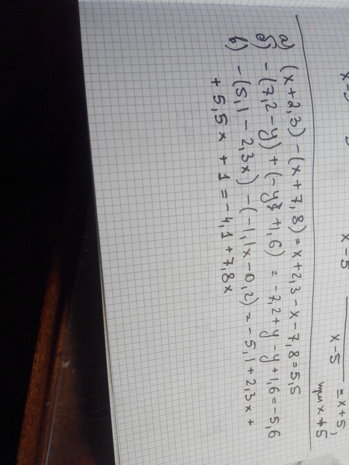 а) (x+2,3)-(x+7,8);