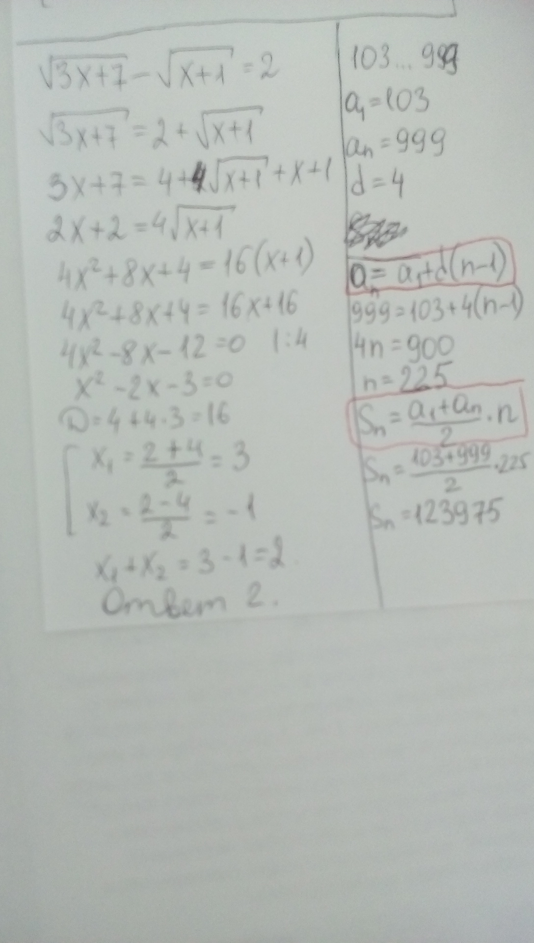 2) сумма корней равна 2<br />4) сумма таких чисел равна 123975<br />решения прилагаю на фотографии))