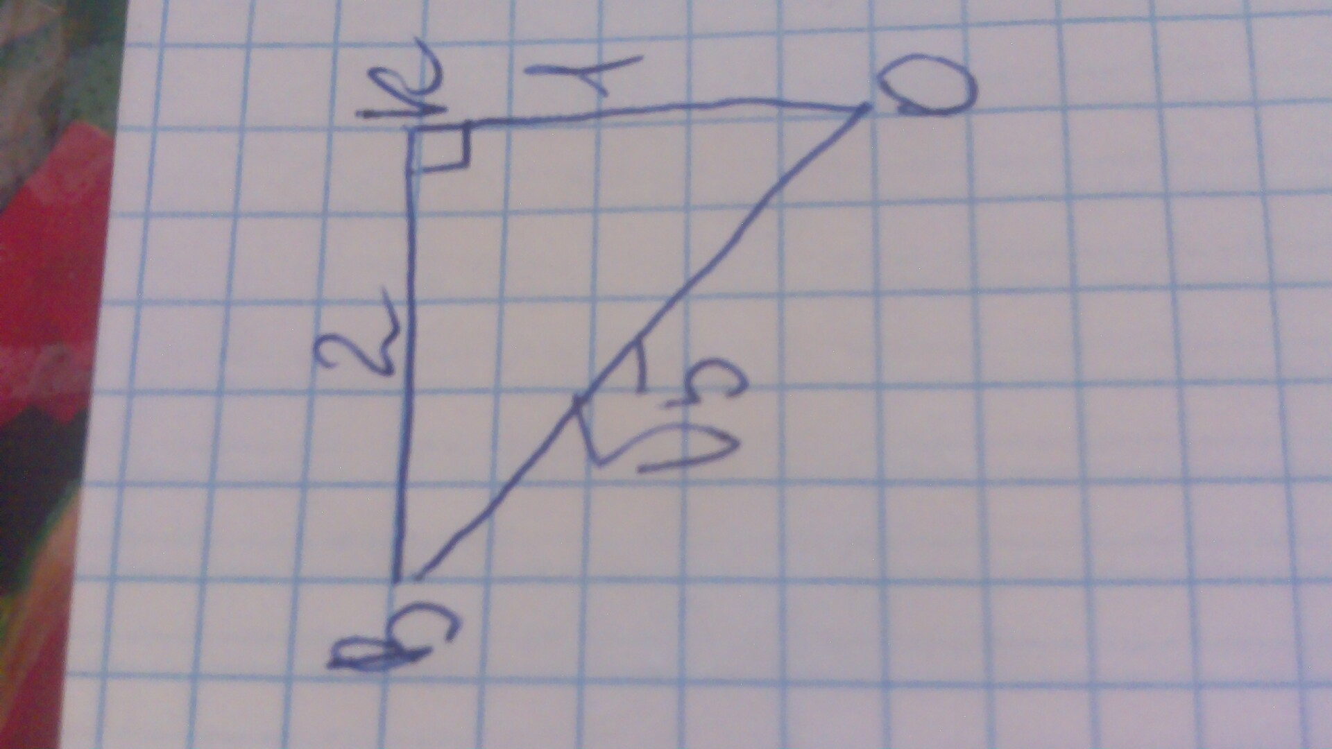 так как треугольник прямоугольный, то sin∠В=1/√5=0,447 по таблицам Брадиса находим, что это угол ≈27°