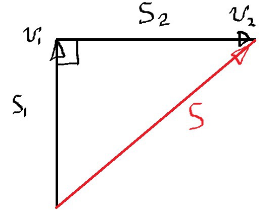 3) длина вектора S2 нам неизвестна, но мы можем ее узнать исходя из определения средней путевой скорости
