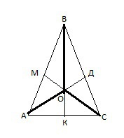 Углы АВО=СВО ( так как ВК биссектриса угла АВС)