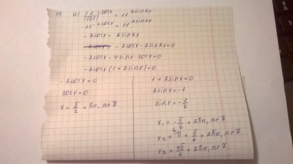Доброго времени суток. Есть ли ошибки с моей стороны в данной уравнении? Т.к с ответом не сходится: pi/2+pin; -pi/6+2pin; -5pi/6+2pin; заранее благодарю за ответ.