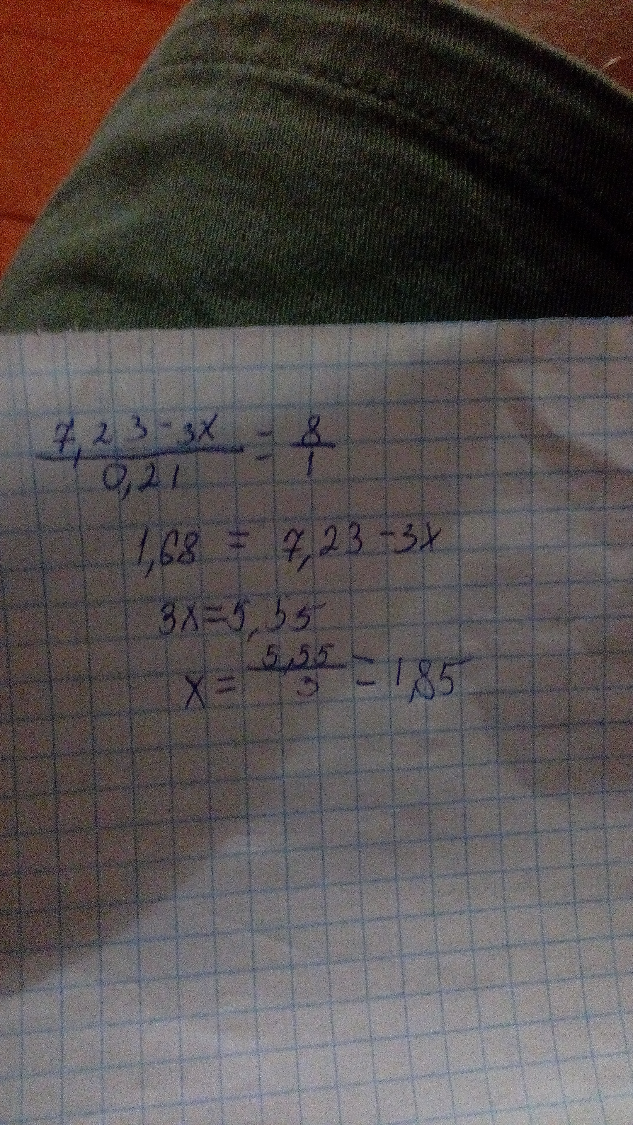(7,23-3X):0,21=8;