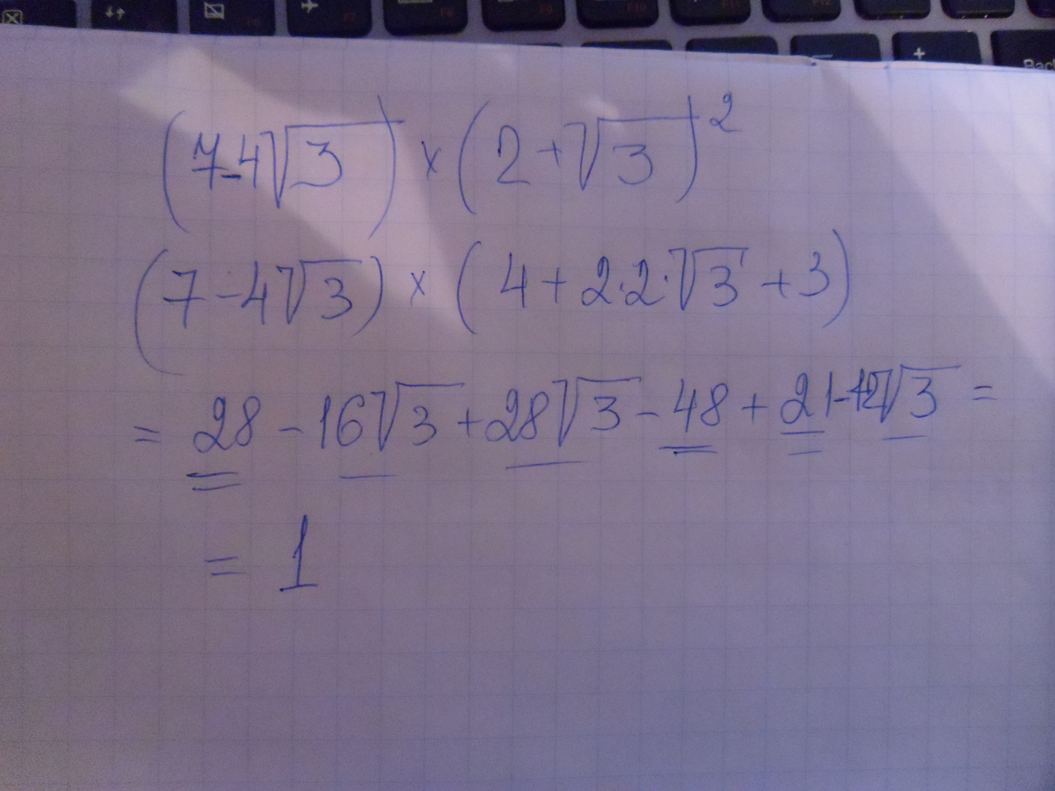 Ошибка в ответе на 1 задание: пропущен один член при умножении (их должно быть 6) :+21. Тогда ответ равен 1.