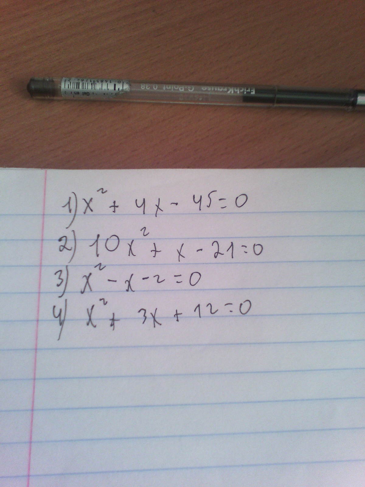 1. Найдем дискриминант квадратного уравнения:D = b2 - 4ac = 42 - 4·1·(-45) = 16 + 180 = 196Так как дискриминант больше нуля то, квадратное уравнение имеет два действительных корня: