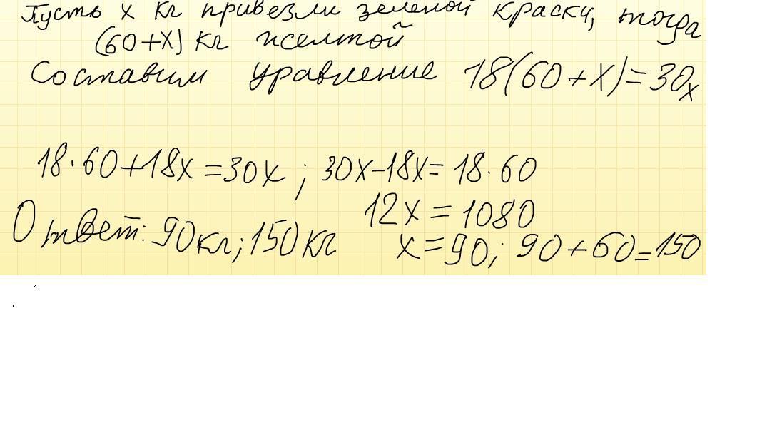 4) 5*18=90 (кг) желтой или 4) 150-60=90 (кг)