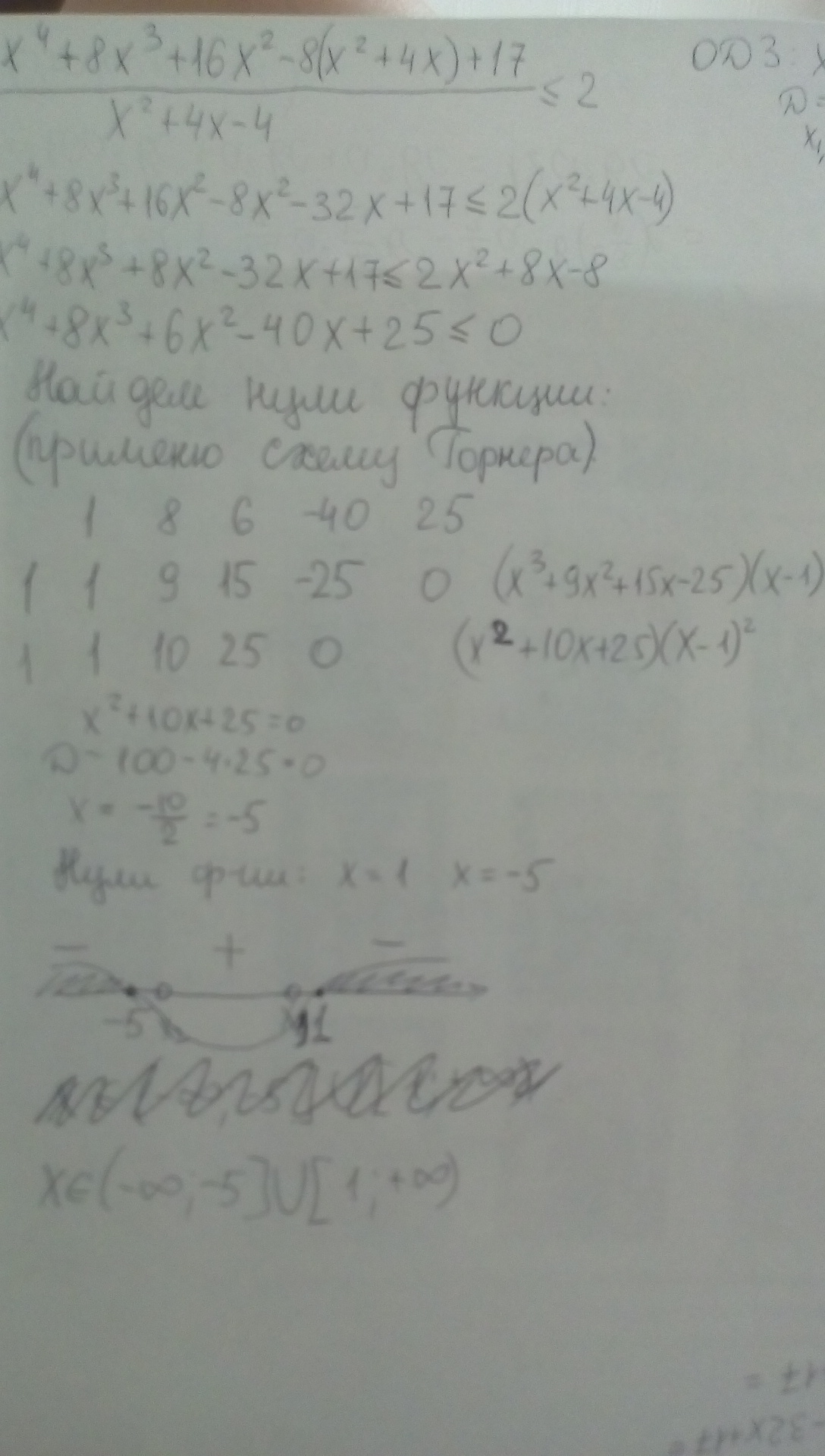 одз на ответ не повлияло, в решении использовала схему Горнера и метод интервалов