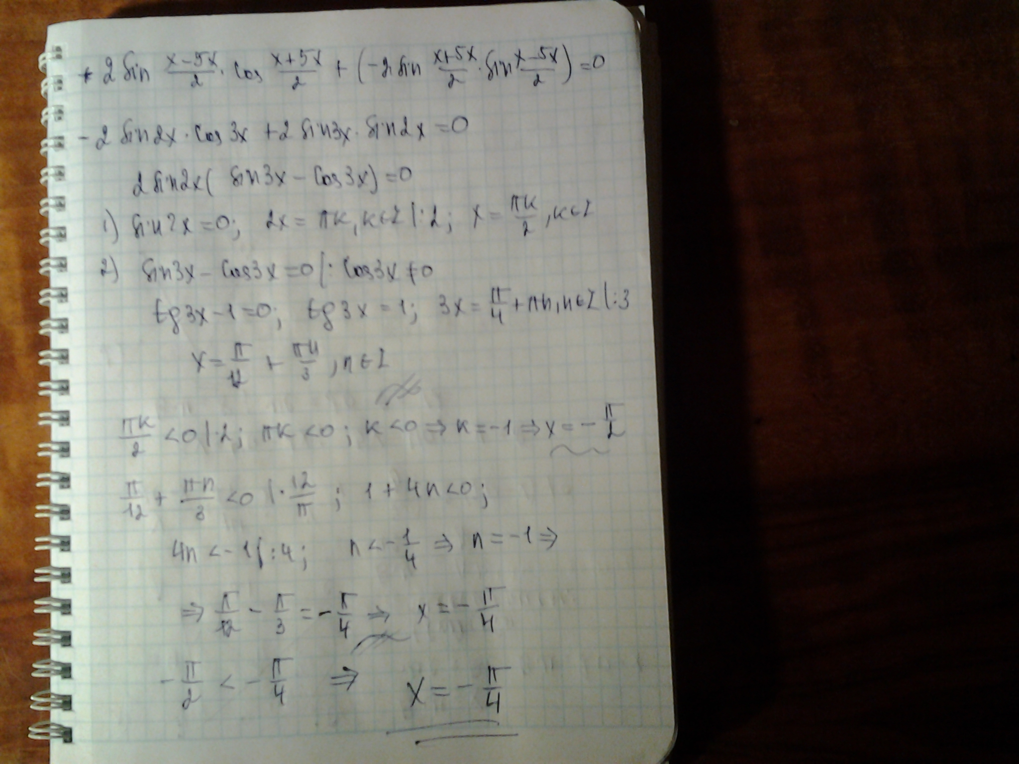 Применены формулы преобразования суммы в произведение, табличные значения синуса и тангенса
