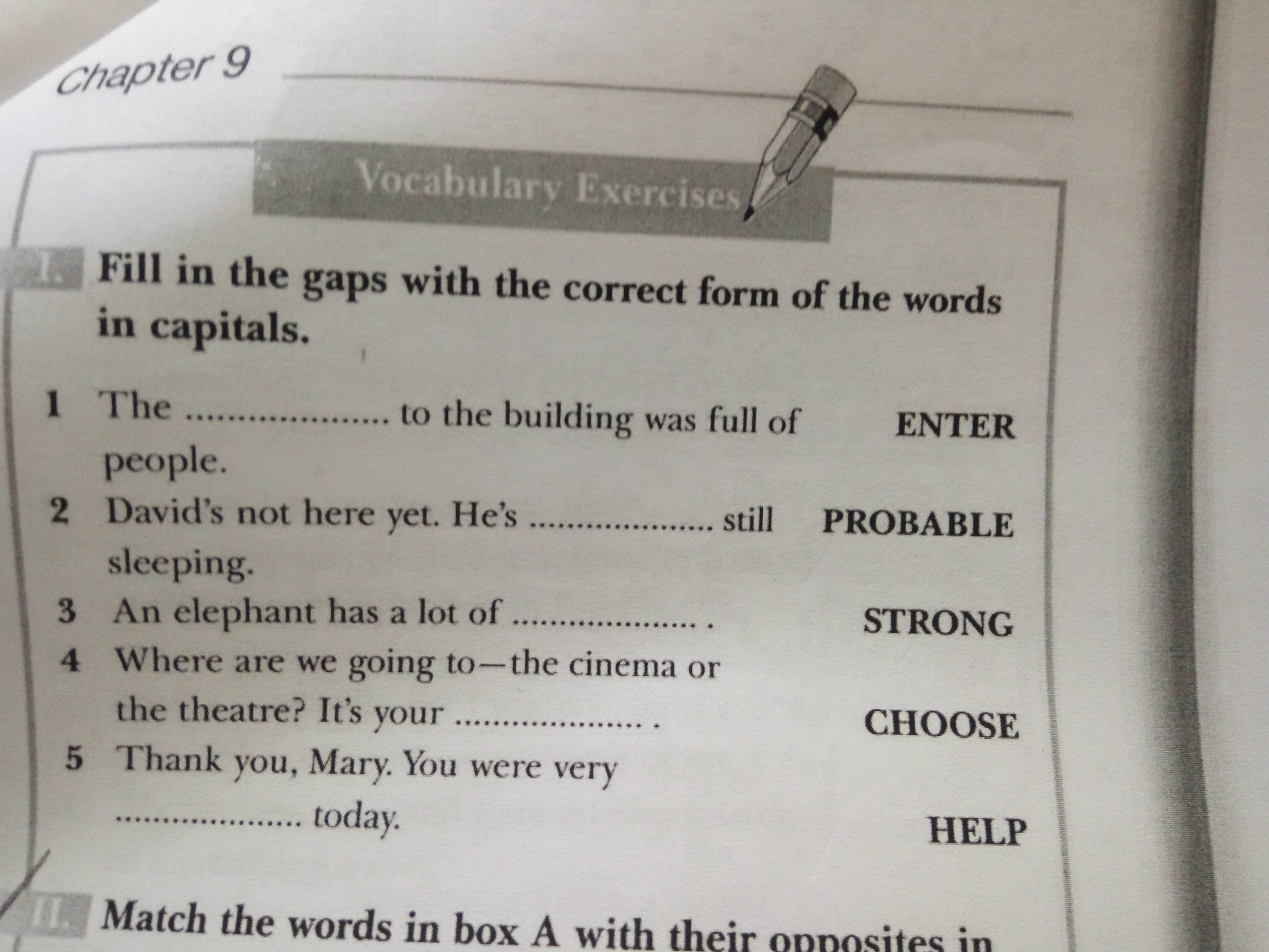 1. entrance,2 probably,3 strength,4 choice,5 helpfull.