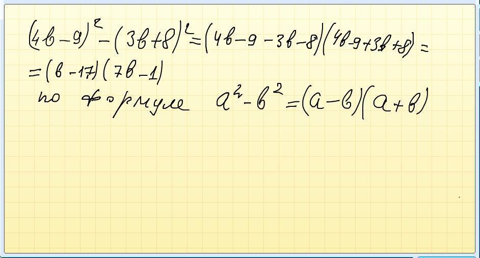 (4b-9)²-(3b+8)²=16b²-72b+81-9b²-48b-64=7b²-120b+17