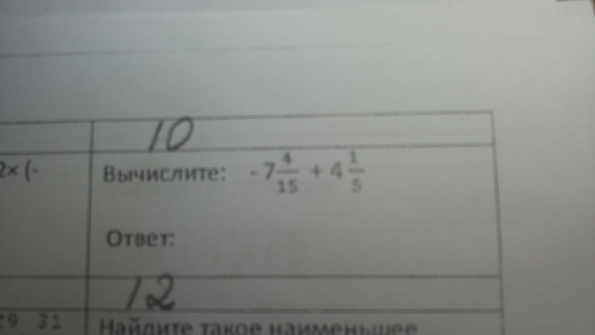 - 7 4/15 + 4 1/5 = - (7 4/15 - 4 1/5) = -(3 4 - 3/ 15) = - 3 1/15