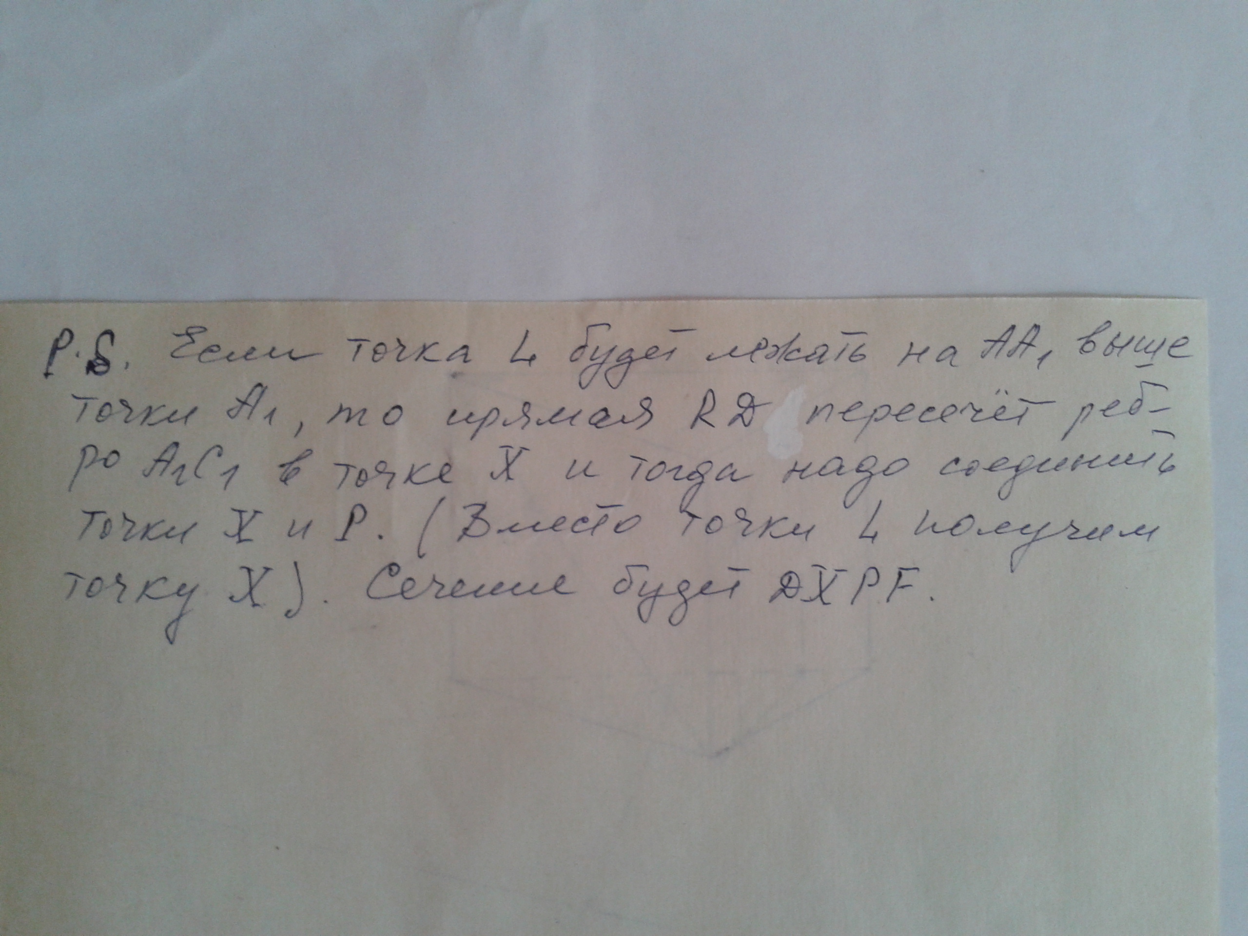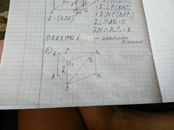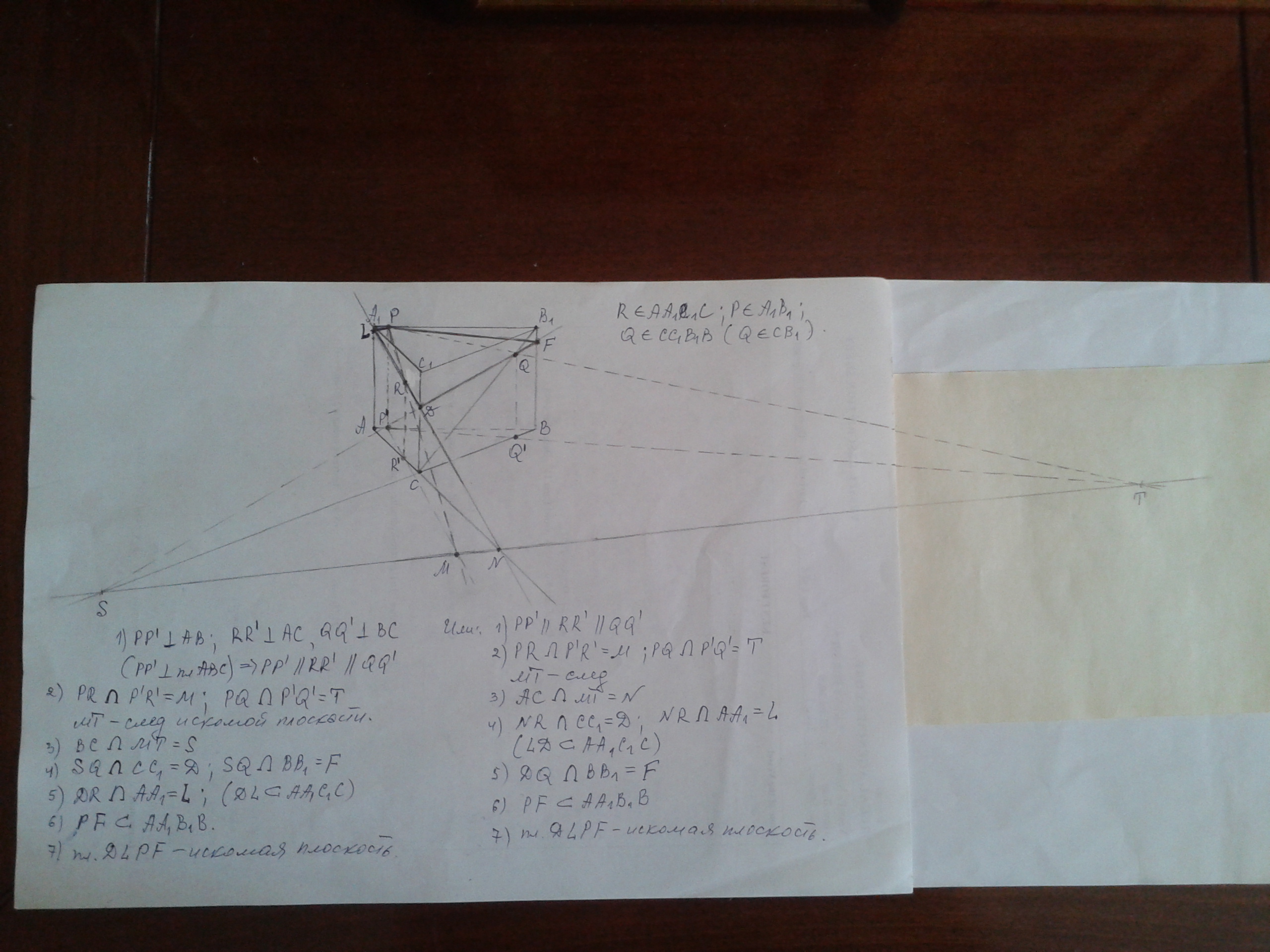Построить сечение плоскостью PRQ. Я уже голову сломала. В геогебре получилось вот такое сечение, но как его построить-не понимаю.