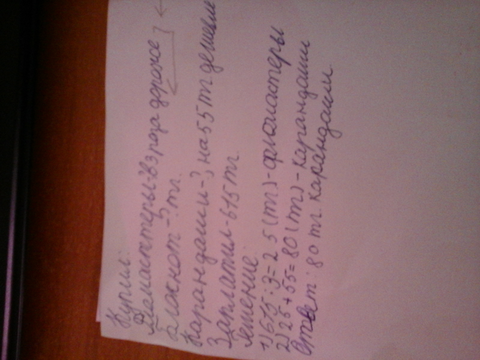 Вася купил фломастеры блокнот и карандаши заплатив за всю покупку 615тг. Фломастеры стоят в 3 раза дороже ,чем блокнот , а карандаши стоят на 55 тг