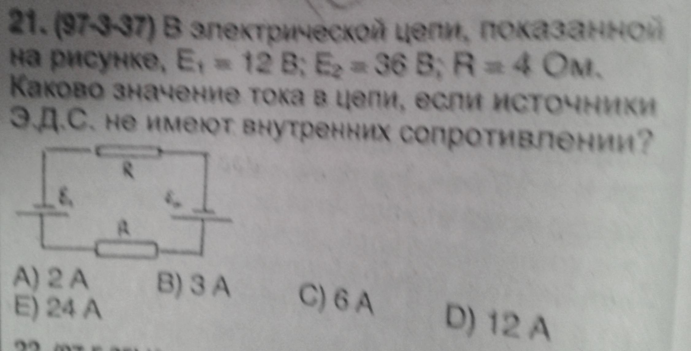 Так как в цепи два источника тока, то при таком соединении общая ЭДС будет равна Е=Е1+Е2=12+36=48 В