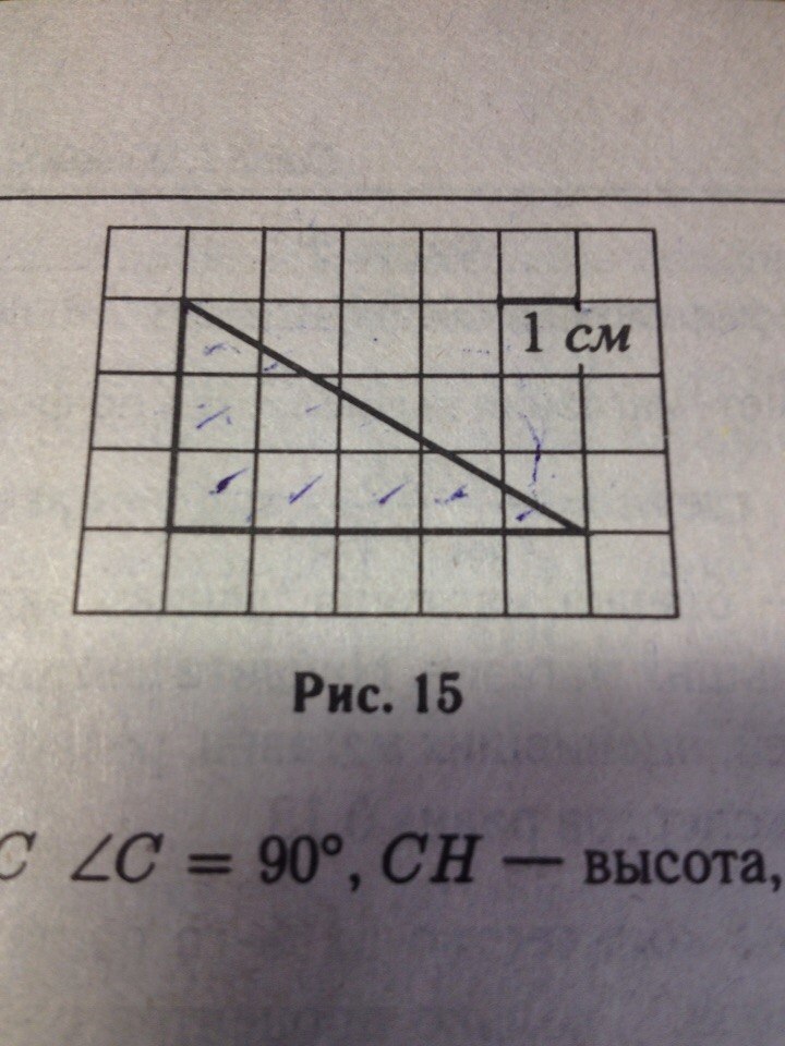 первый способ: увидим в этом треугольнике прямоугольный с катетами 3 см и 5 см (так как одна клетка соответствует 1 см)
