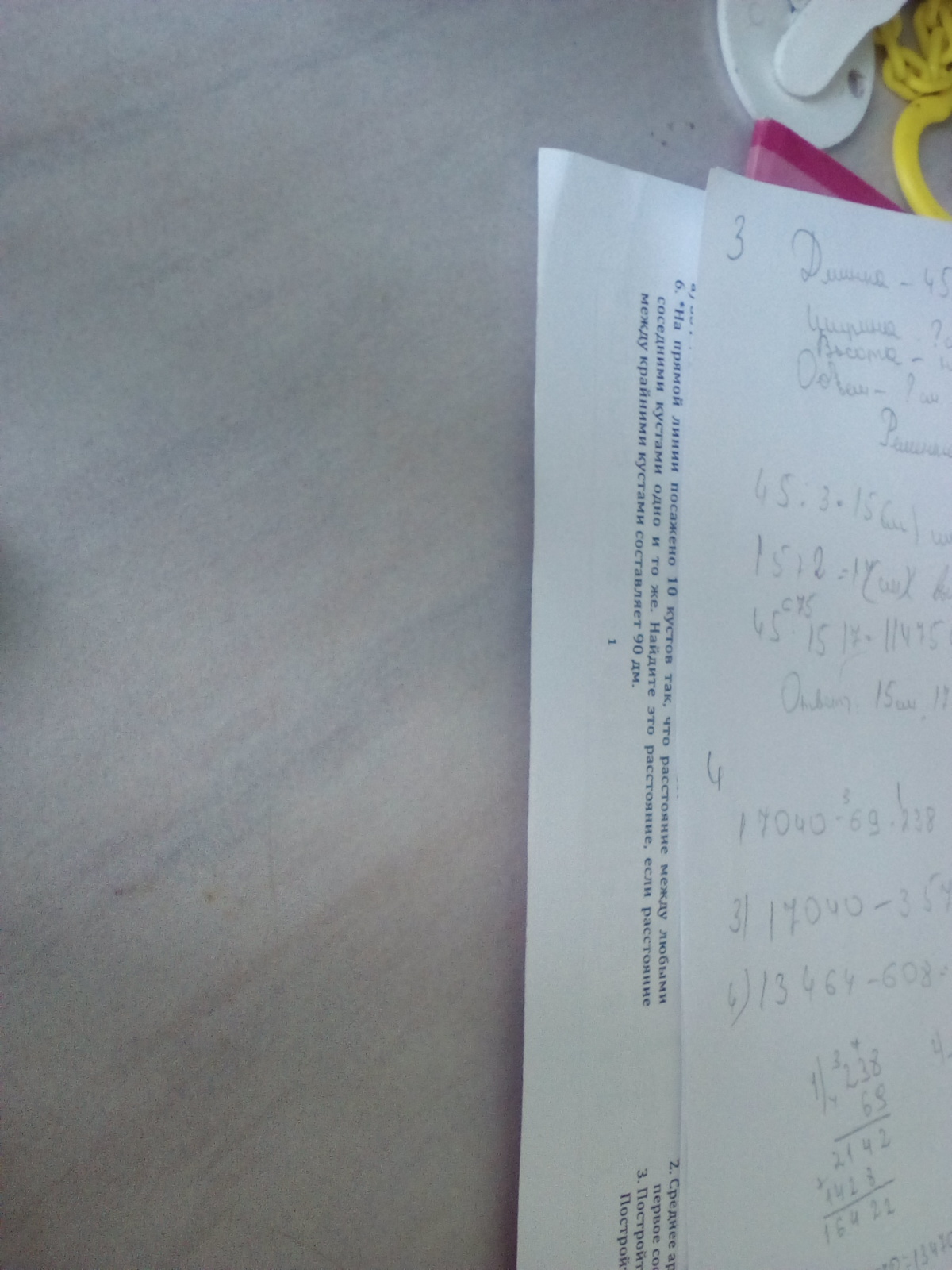 90:9=10 дм - расстояние между соседними кустами.