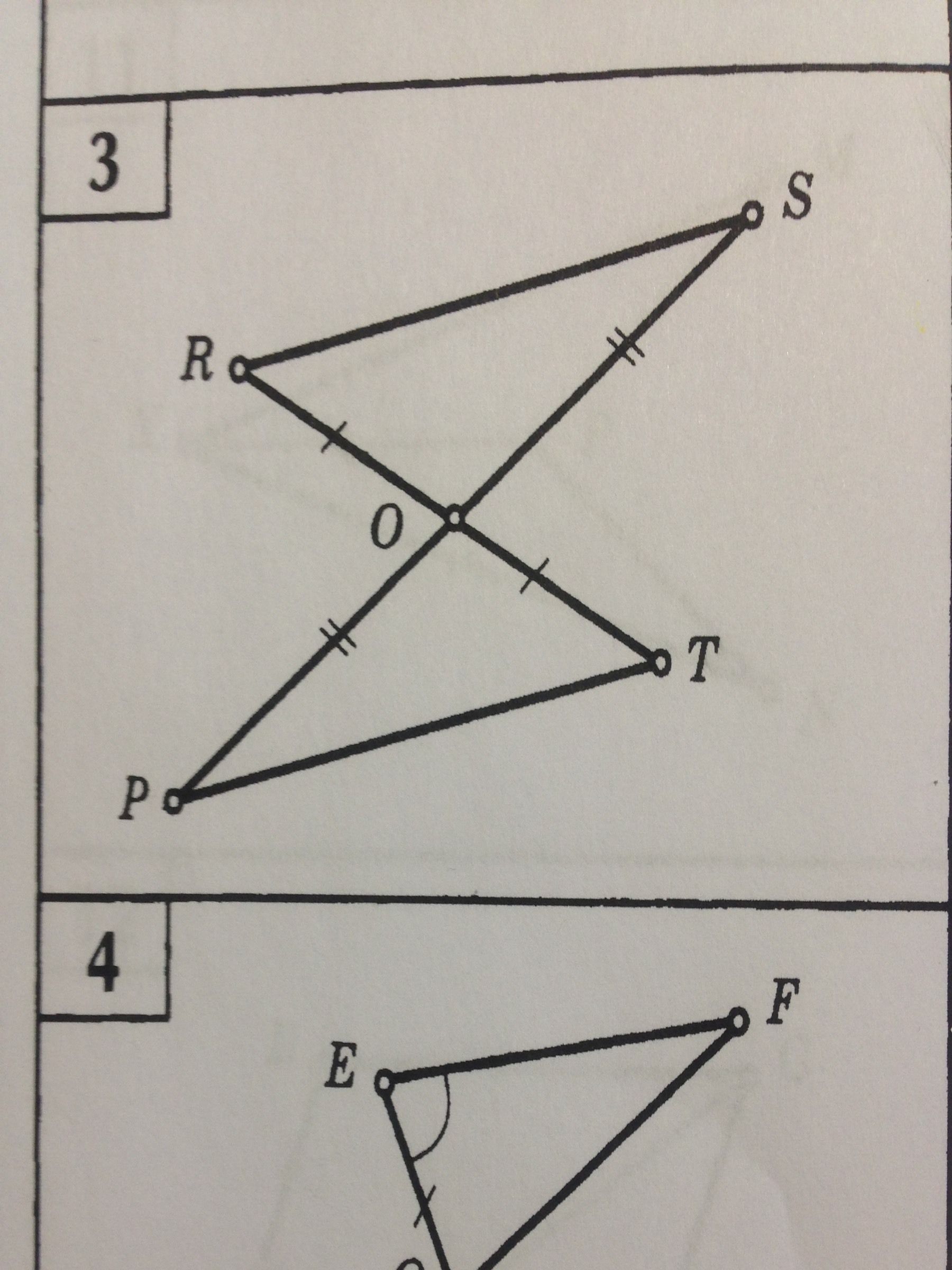 Т.к RO = TO по условию, SO = PO по условию, ∠ROS = ∠TOP (вертикальные), то ΔROS = ΔTOP по двум сторонам и углу (т.е по первому признаку равенства треугольников).