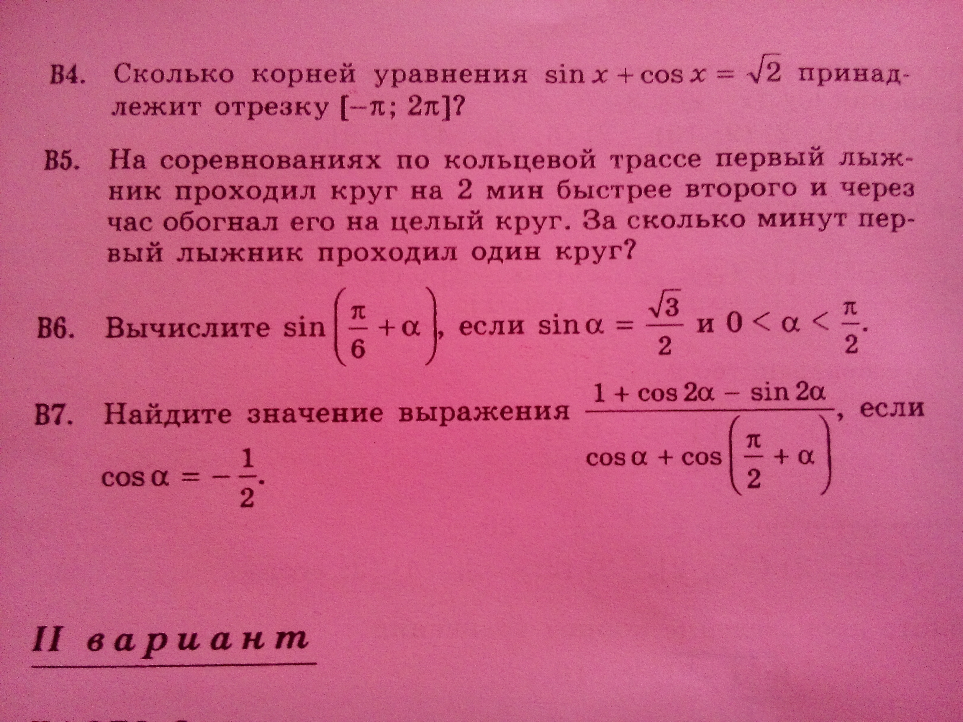 B7. cosα=-1/2 ⇒ cos2α=2cos^2α-1=2(-1/2)^2-1=-1/2 sinα=√(1-(-1/2)^2)=√3/4=√3/2