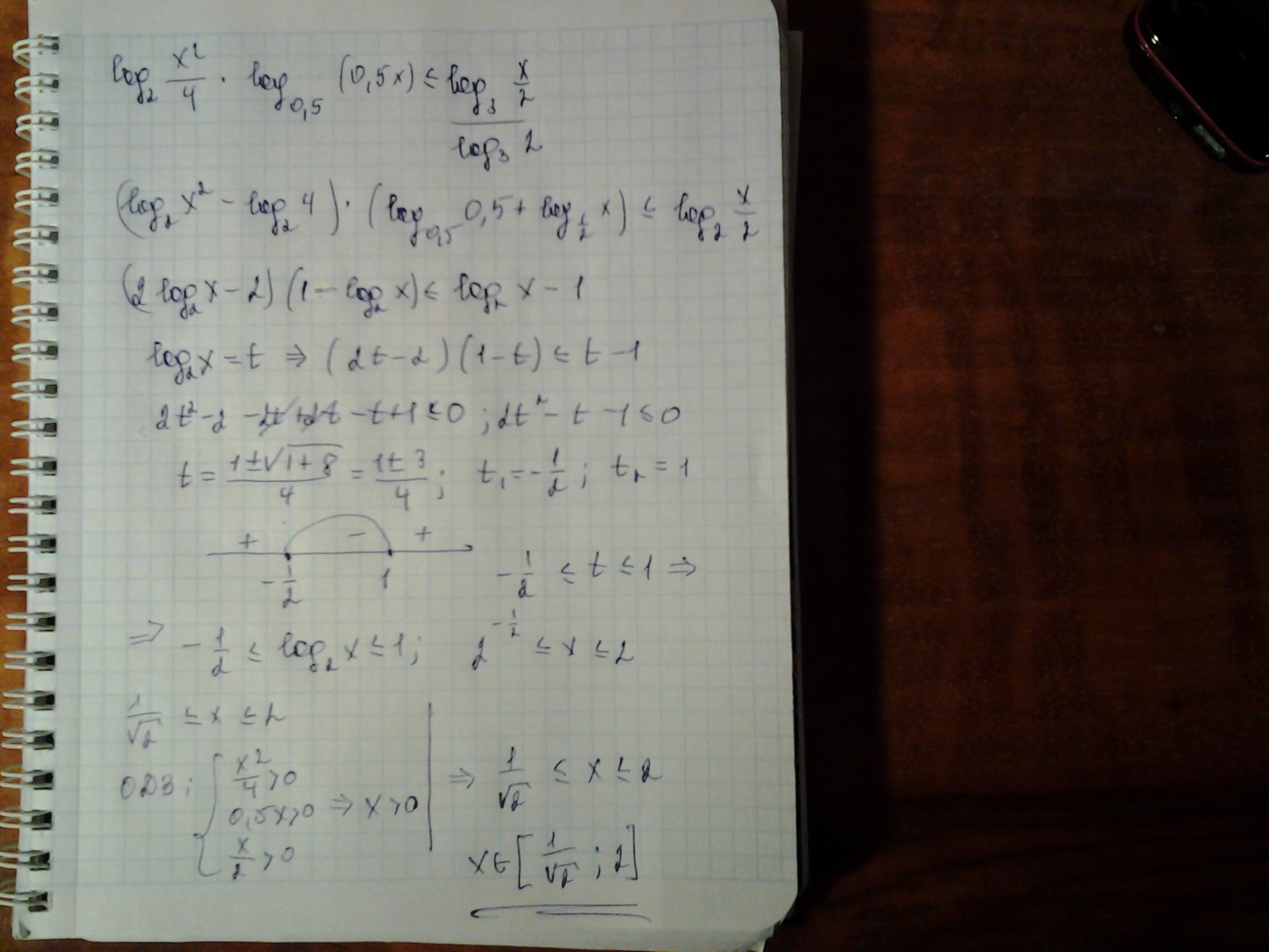 Применены : свойства логарифмов, замена переменной, метод интервалов