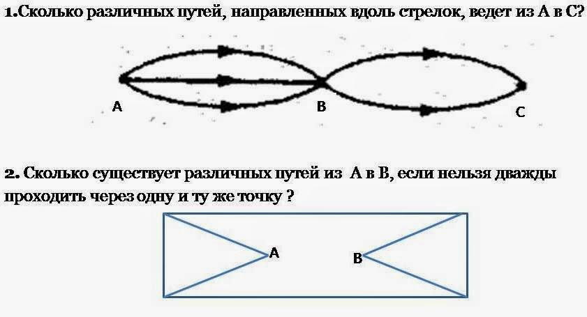 сколько существует различных путей из А в В,если нельзя дважды проходить через одну и ту же точку?