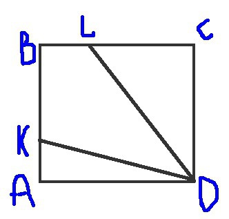 На сторонах АВ и ВС квадрата АВСД отложены отрезки АК=13 АВ и ВЛ = 13 ВС. Найдите площадь четырехугольника КВЛД, если площадь квадрата АВСД равна 1 см2
