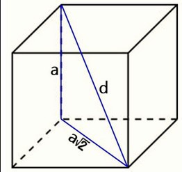 Диагональ d = √(a√2)²+a²) = √(2a²+a²) = √(3a^2) = a√3 → a = d / √3 = (d√3) / 3